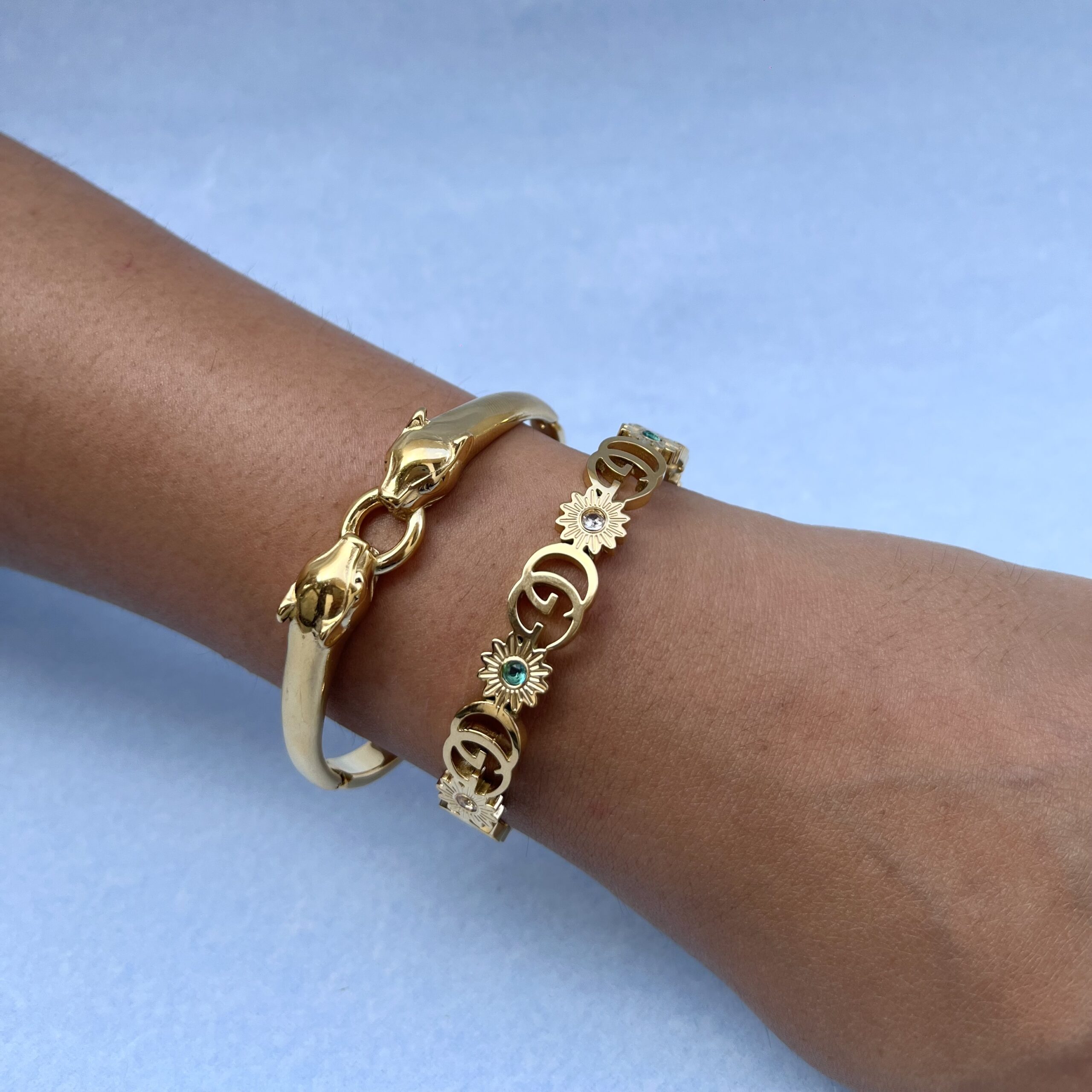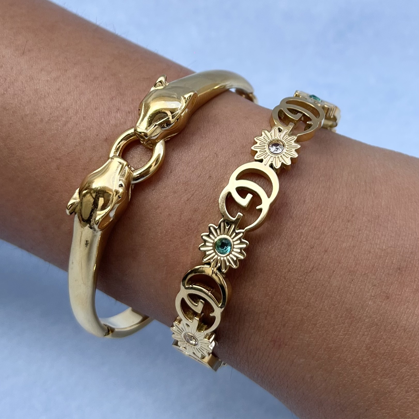 Bracelet Stack (Set of 2)- Emerald Bloom Bracelet & Twin Panther Power Cuff Bracelet