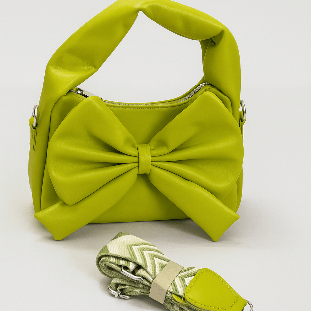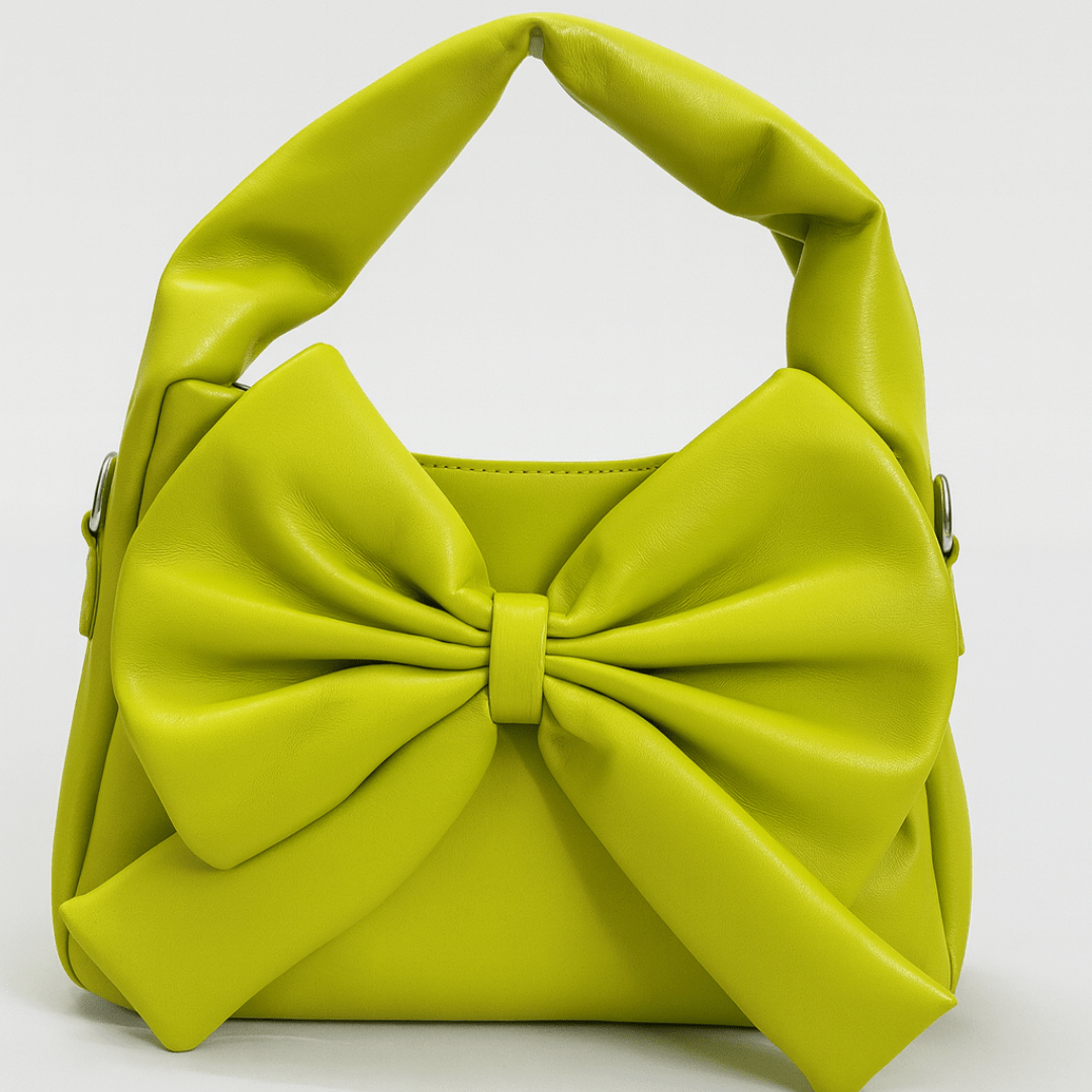 Chic Lime Neon Green Bow Handbag with Detachable Sling Strap
