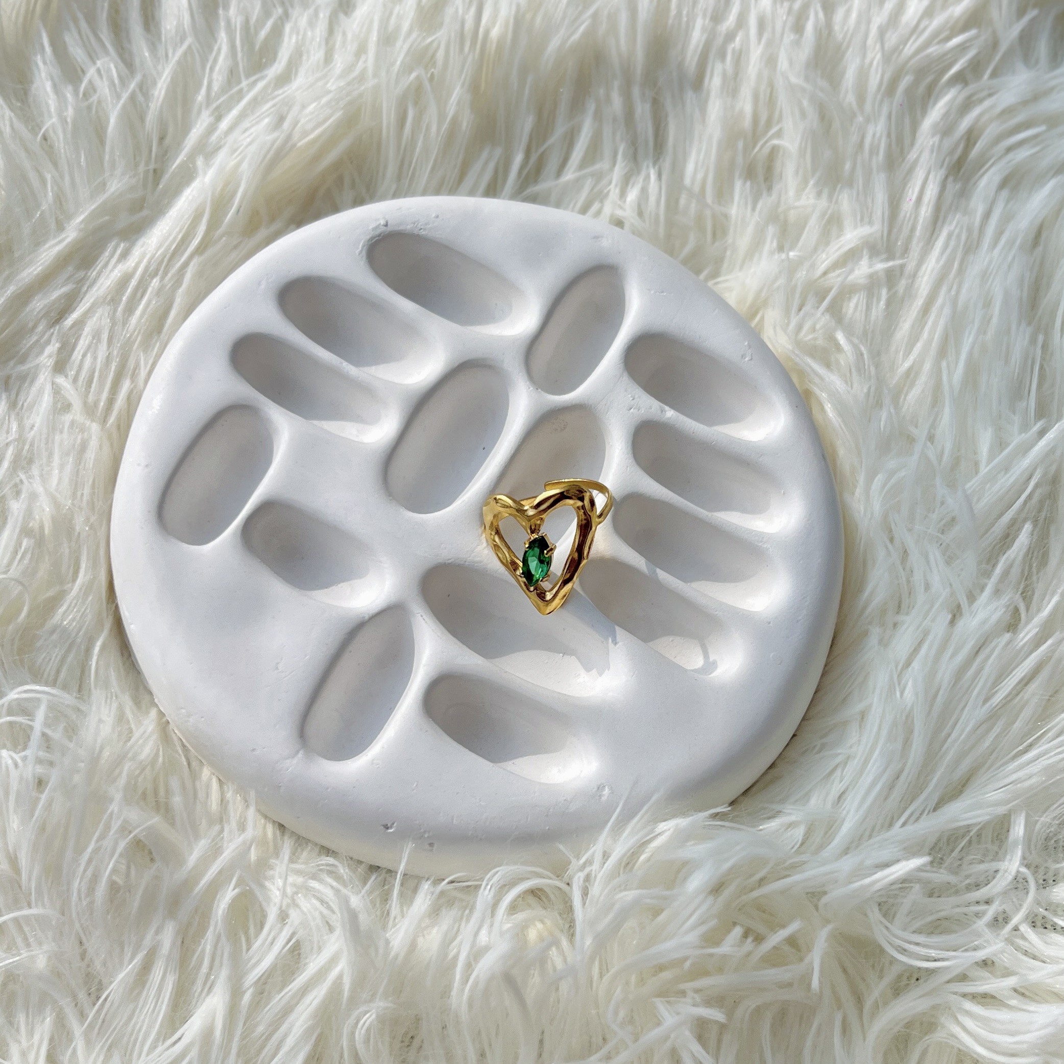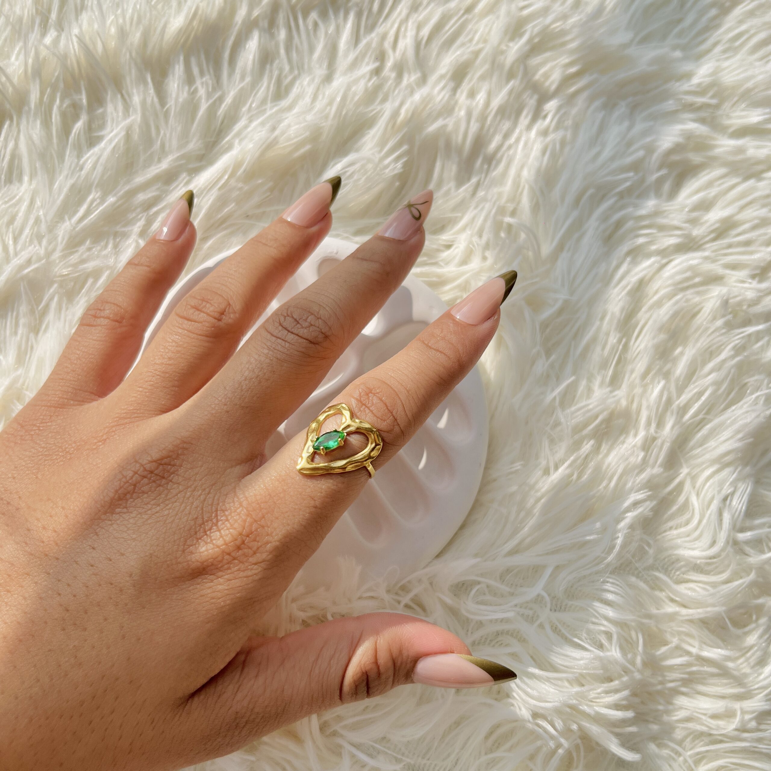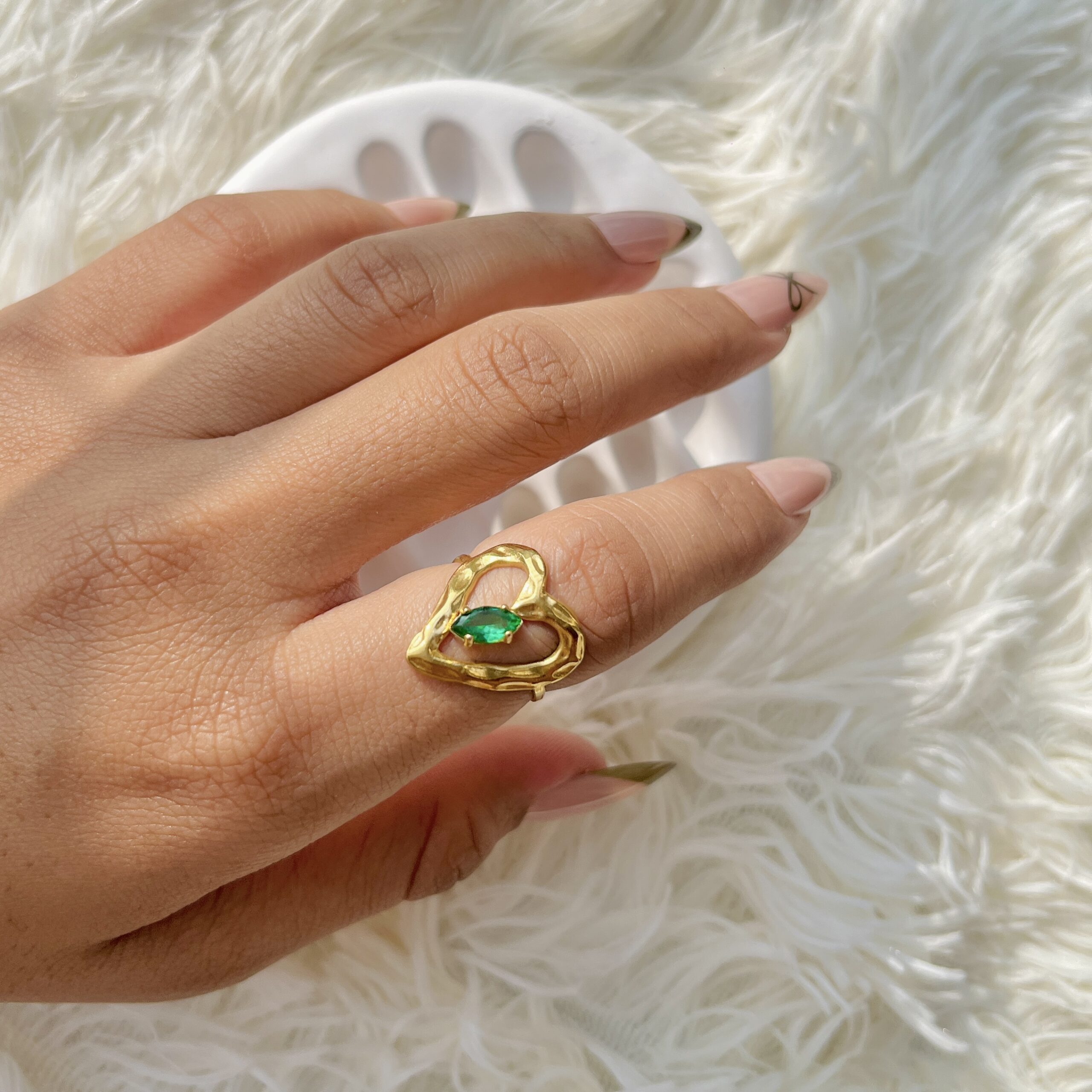 Add a hint of luxury and romance with the Emerald Heart Adjustable Ring. Designed with an elegant open-heart frame and a radiant emerald-green stone at the center, this ring embodies timeless beauty. Whether it’s for a special occasion or everyday wear, this piece elevates every look effortlessly.