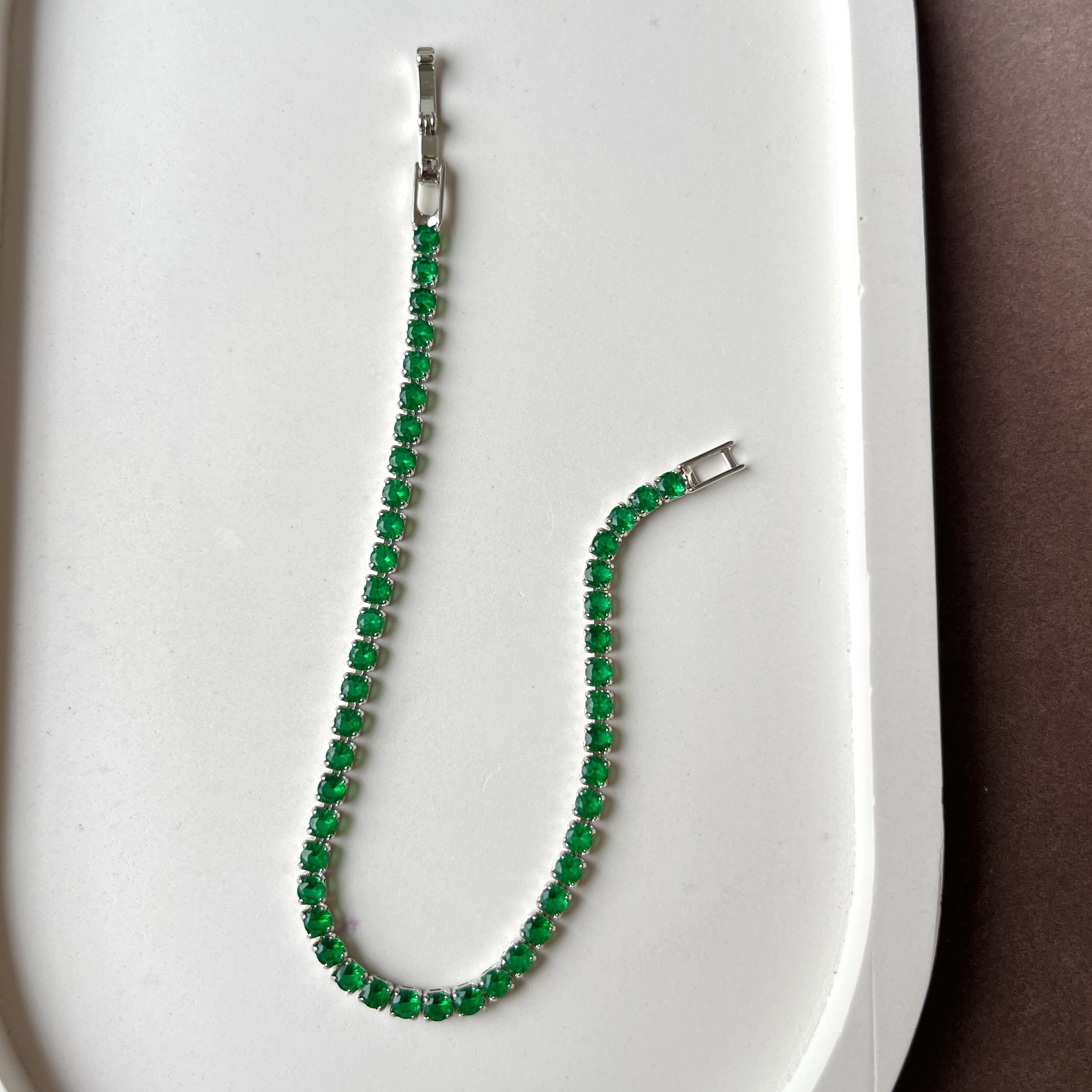 Add a pop of luxury with this Emerald Tennis Bracelet, featuring vibrant green stones set in a sleek, timeless design. A perfect blend of elegance and modern charm that elevates any look.