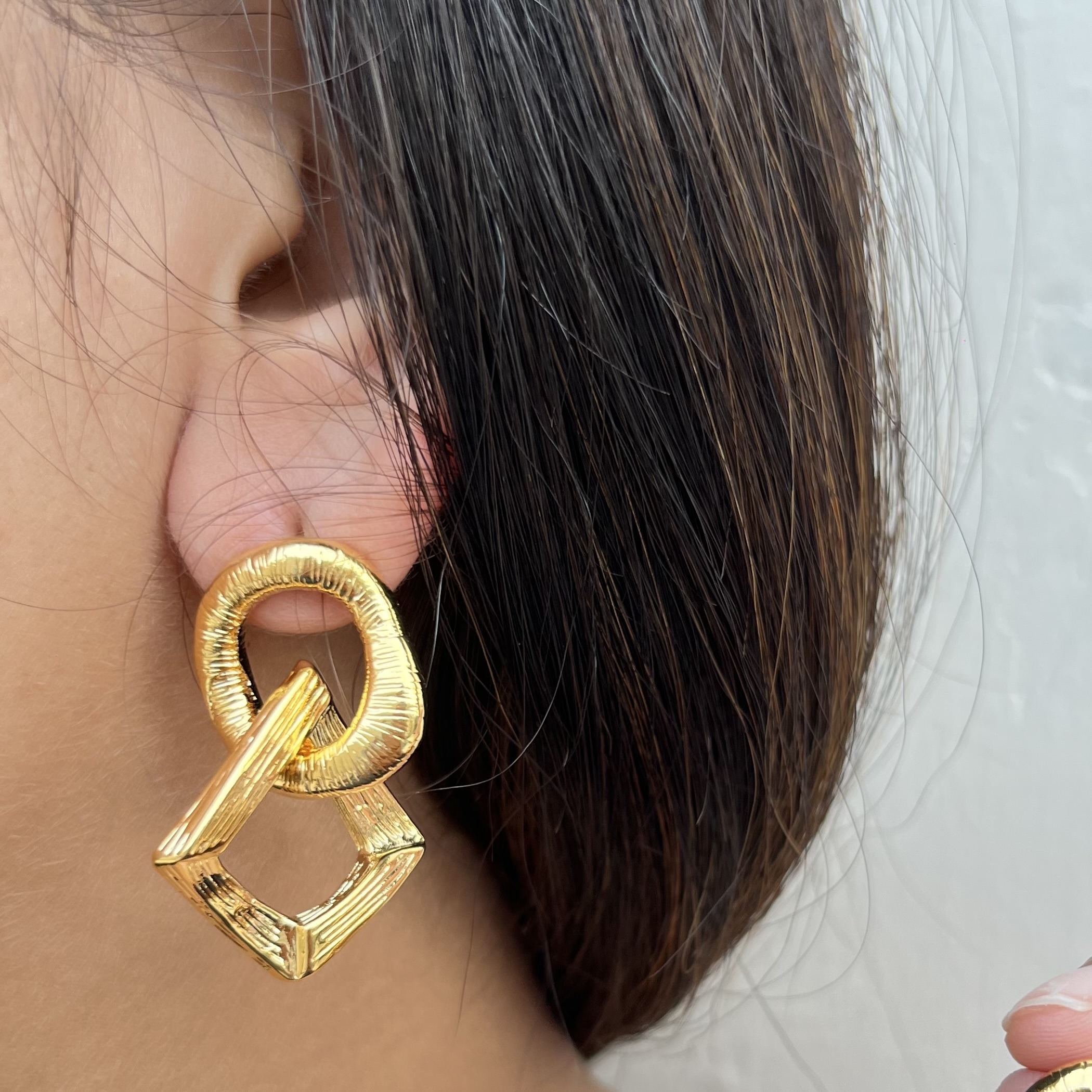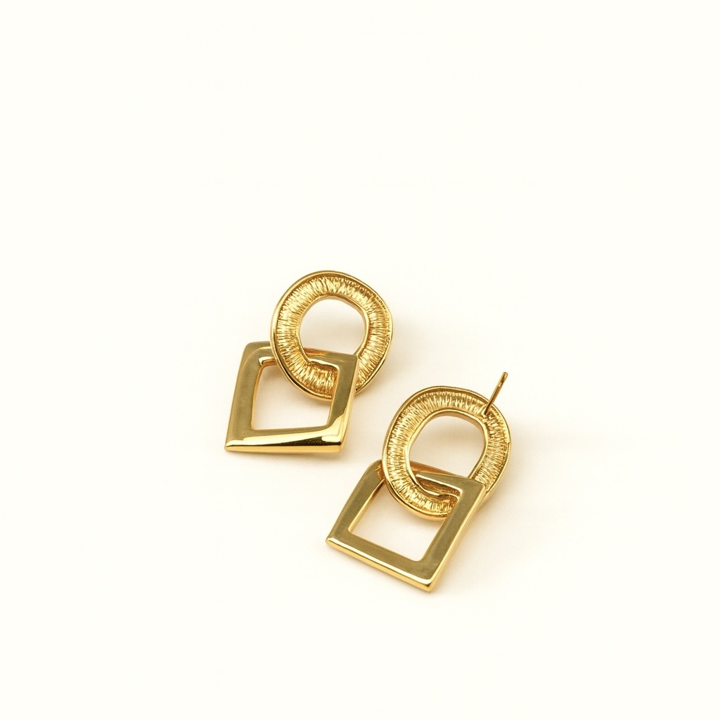 Make a bold statement with these Interlock Statement Earring. Featuring an artistic fusion of textured circles and angular squares, this modern design adds a contemporary edge to your style. With a polished anti-tarnish finish, these earrings promise durability and lasting shine. Perfect for elevating both casual and dressy looks, they’re a must-have for every trend-forward jewelry collection.