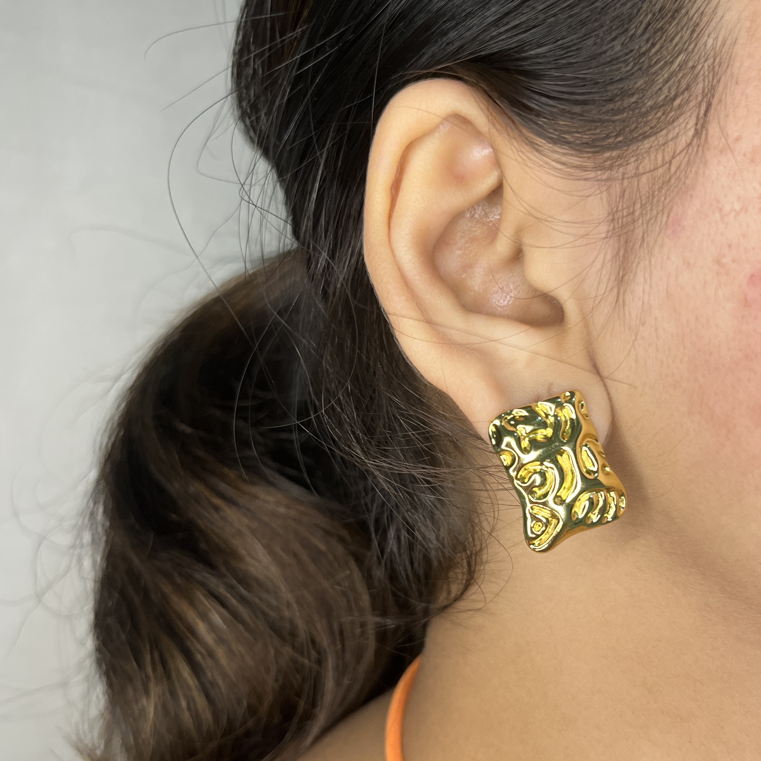 Add a touch of bold sophistication with these Textured Gold Rectangle Earrings, designed to make a statement while keeping it elegant. Their artistic texture and sleek silhouette bring a modern edge to any outfit.