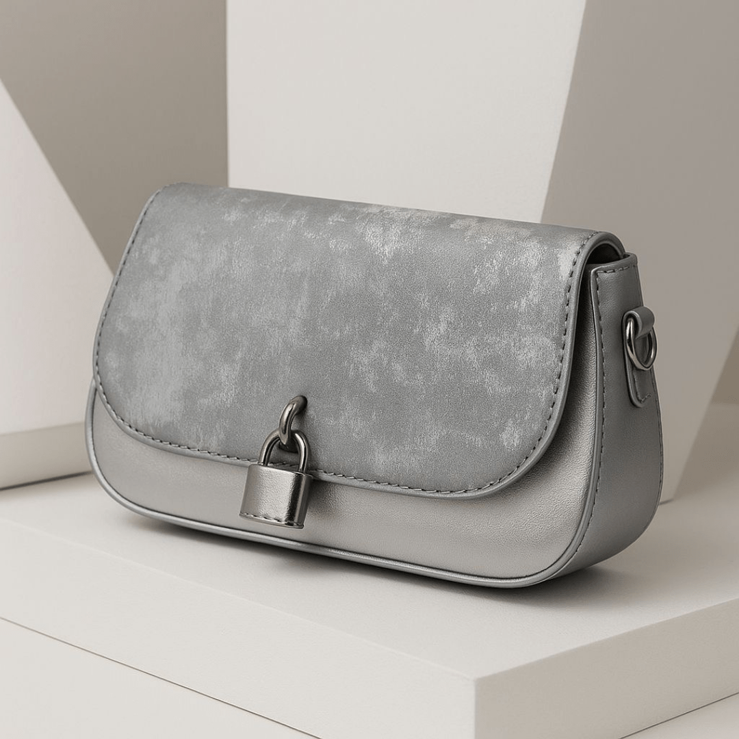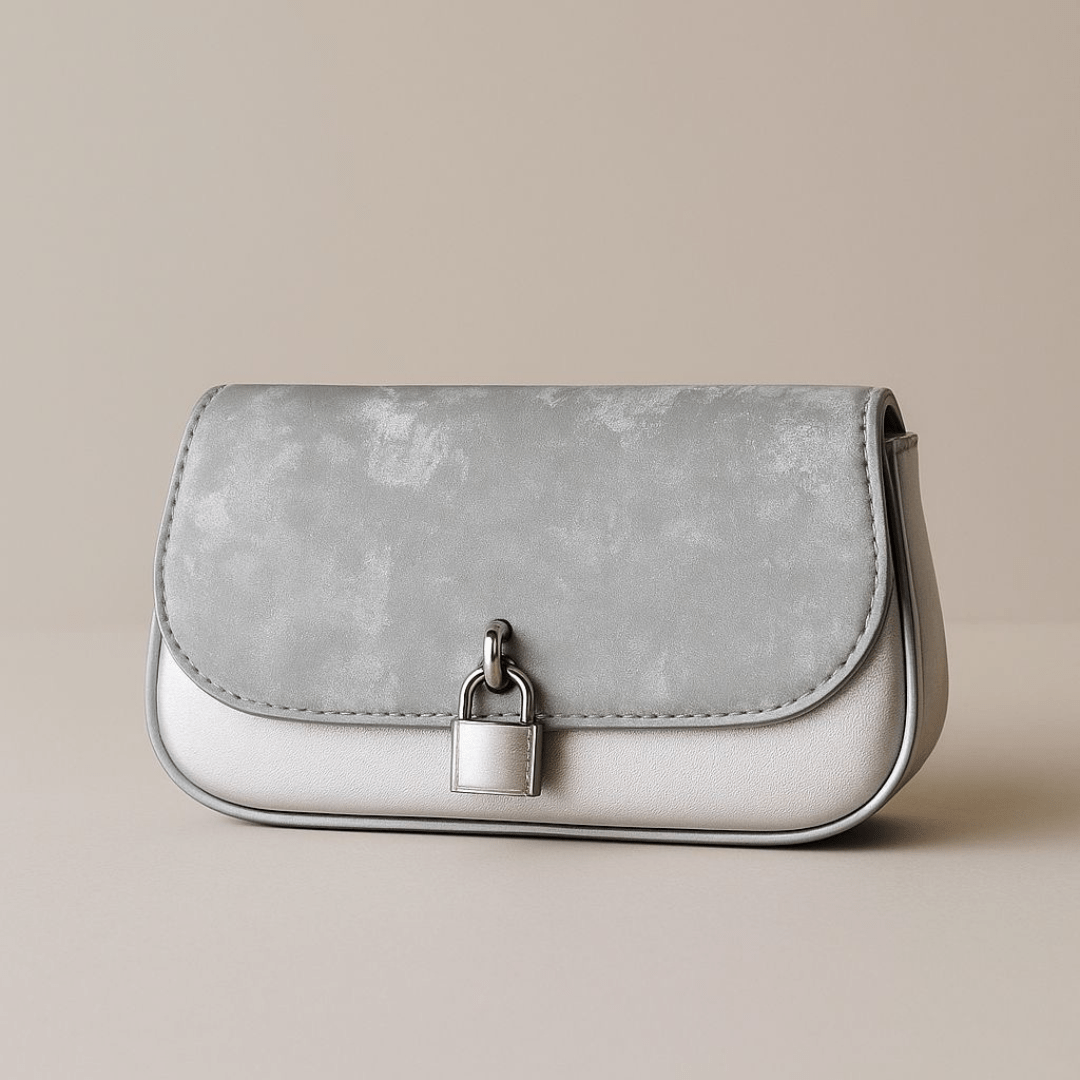 Stylish Silver-Grey Clutch Bag with Lock Accent